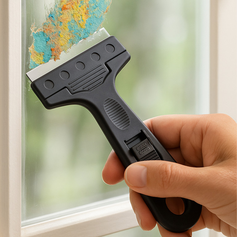 Üveg- és ablaktisztítás – eltávolítja a szennyeződéseket, a ragasztót és a festéket a felület karcolása nélkül.