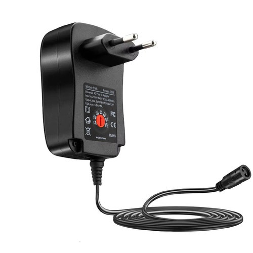 Ez a univerzális feszültségszabályozós tápegység egy sokoldalú eszköz, amely otthoni és professzionális használatra egyaránt alkalmas. A feszültség beállítható 3V-tól egészen 12V-ig, így különféle elektronikai eszközök, például routerek, modemek, kamerák, hordozható hangszórók, valamint egyes laptopok működtetésére is használható. Széleskörű kompatibilitás A készletben található hat cserélhető csatlakozó biztosítja, hogy szinte bármilyen DC csatlakozós eszközhöz csatlakoztatható legyen. A különböző méretű csatlakozók megkönnyítik a kompatibilitást különböző eszközökkel. Hatékony és megbízható működés A 30W teljesítményű tápegység stabilizált kimeneti feszültséggel biztosítja az eszközök biztonságos működését. Az 150 cm hosszú kábel lehetővé teszi az eszközök kényelmes használatát még nehezen elérhető helyeken is. Az USB port lehetővé teszi az okostelefonok és tabletek egyidejű töltését. Tartósság és biztonság A készülék ABS és PC műanyagból készült, ami ellenáll a mechanikai sérüléseknek és magas hőmérsékletnek. A rugalmas tápkábel ellenáll a kopásnak és sérülésnek, még intenzív használat esetén is. Műszaki adatok Anyag: ABS, PC Teljesítmény: 30 W Bemeneti feszültség: AC 100 - 240V 0,25A 50/60Hz Kimeneti feszültség: 3V / 4.5V / 5V / 6V / 7.5V / 9V / 12V USB kimenet: 5.0V 2.1A Maximális kimeneti áram: 2000mA Csatlakozó típusok: 2.5 x 0.75mm, 3 x 1.1mm, 3.5 x 1.35mm, 4 x 1.7mm, 5.5 x 2.1mm, 5.5 x 2.5mm Tápkábel hossza: 150 cm Méretek: 8 x 7 x 5 cm Súly: 0.122 kg A csomag tartalma Univerzális tápegység 6 cserélhető csatlakozó Kulcs a feszültség beállításához