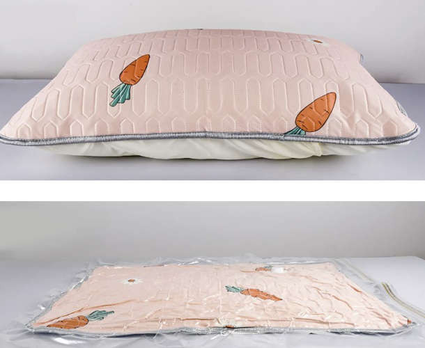 Egyszerűen csomagold be a ruhákat vagy ágyneműt, majd használj hagyományos porszívót vagy a készletben található légszívó szivattyút, hogy a zsákból kiszívjad a levegőt. A zsákok akár 80%-kal csökkentik a térfogatot, így a bőrönd vagy a szekrény is sokkal rendezettebb lesz.