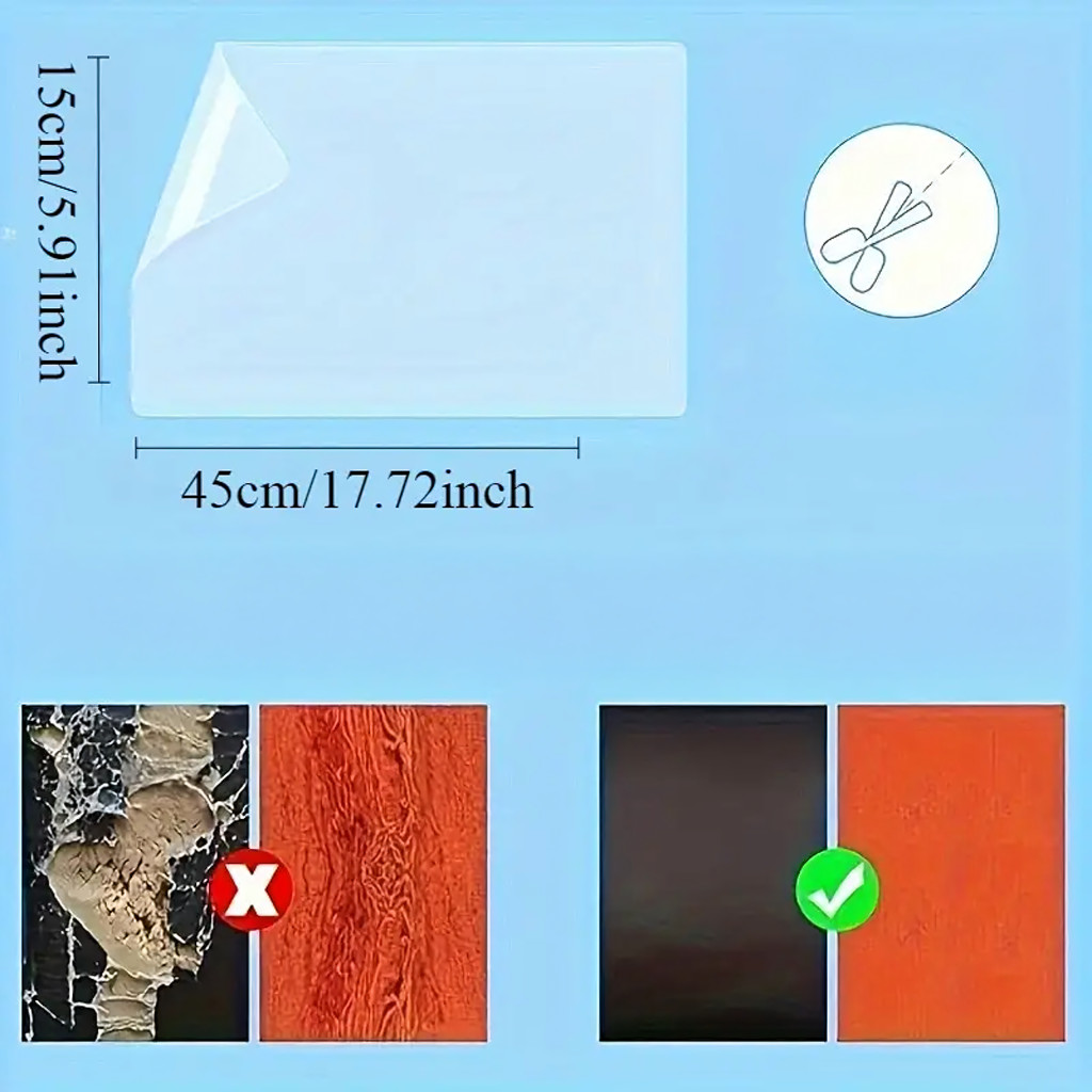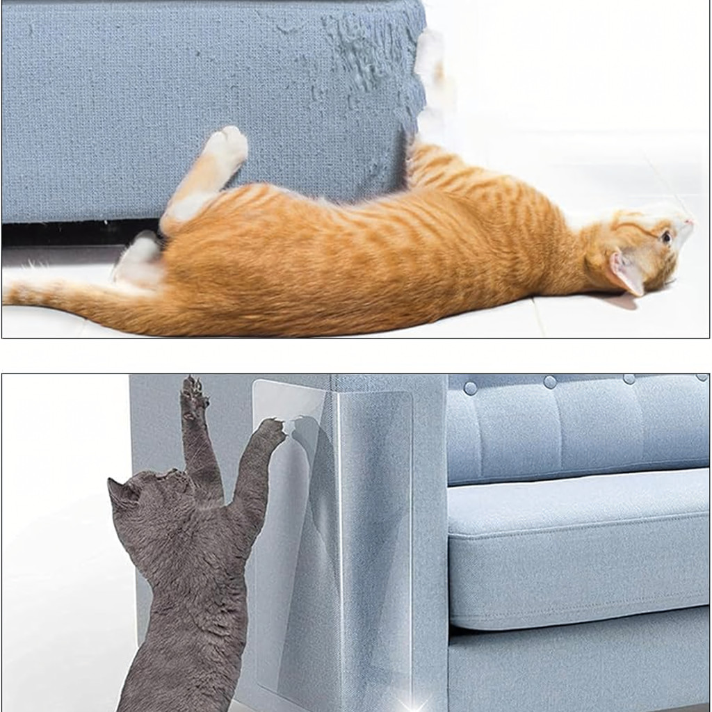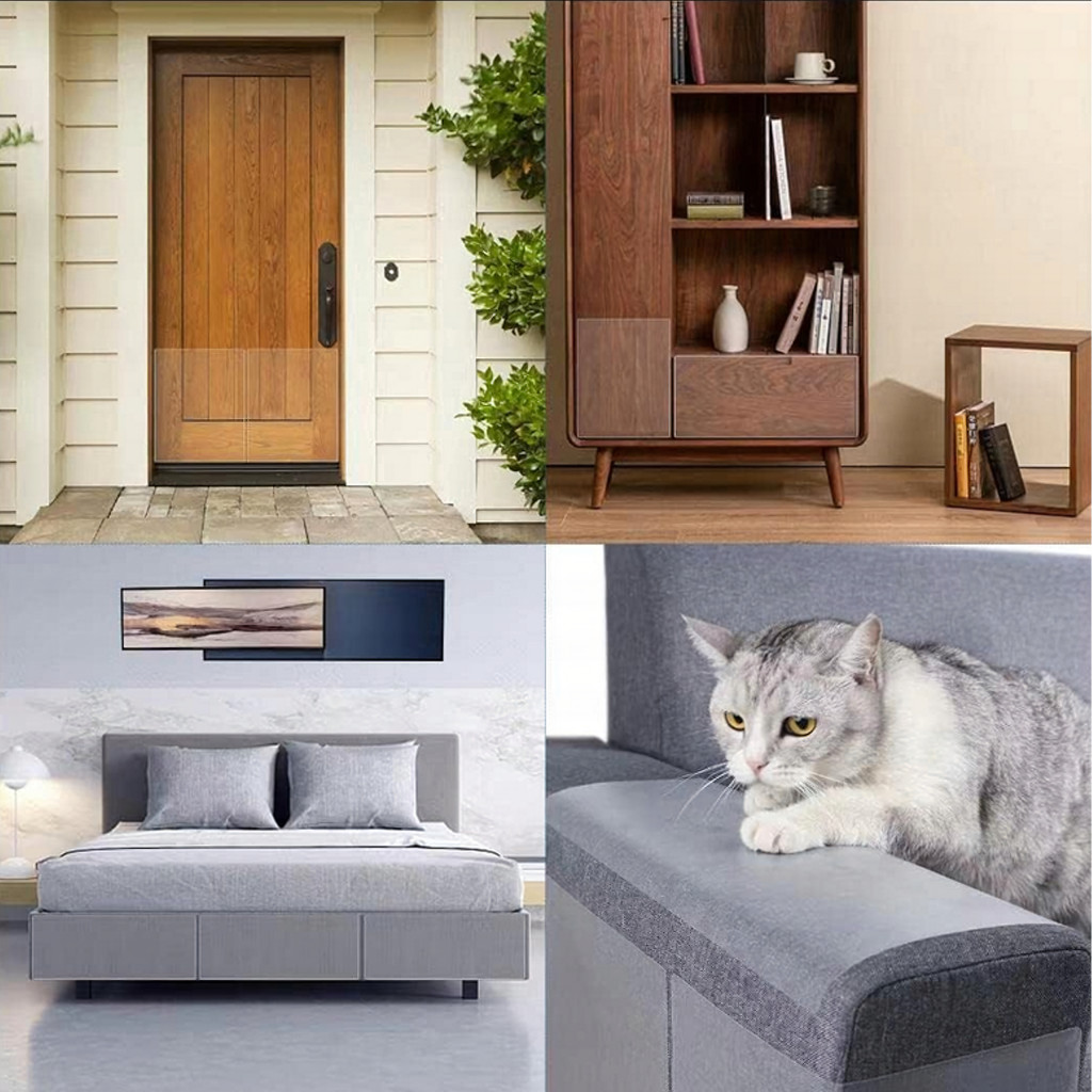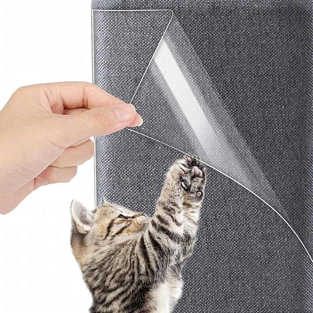 Átlátszó védőfólia 45×15 cm (5 db) hatékonyan védi a bútorokat, ajtókat és egyéb felületeket a macskakarmolástól, könnyen felszerelhető, újrafelhasználható, biztonságos az állatok számára.