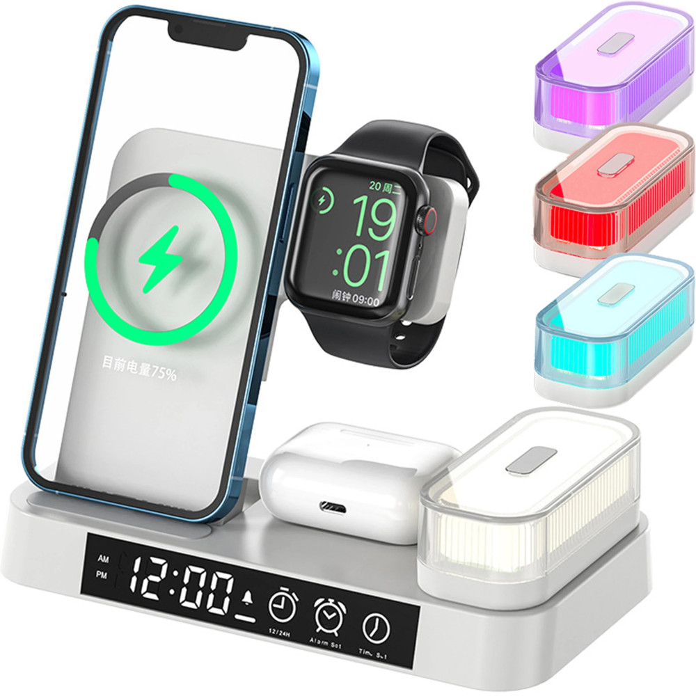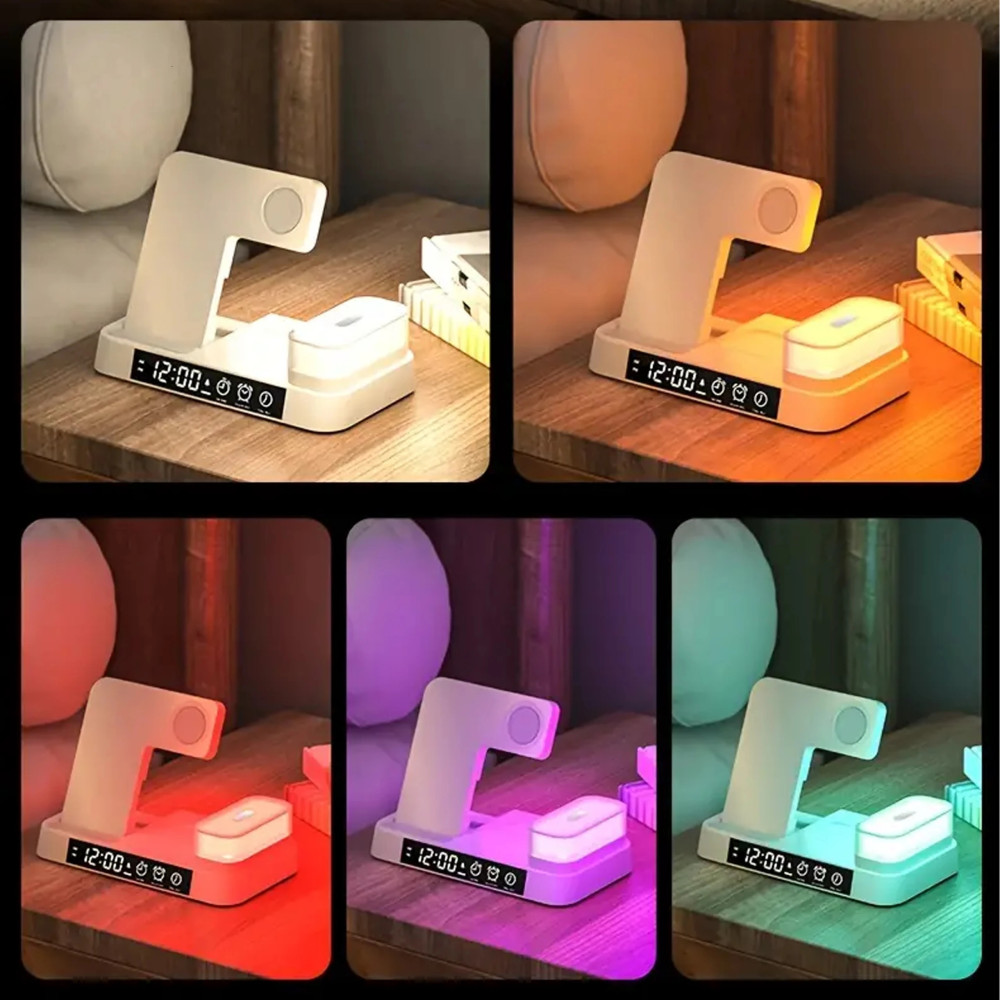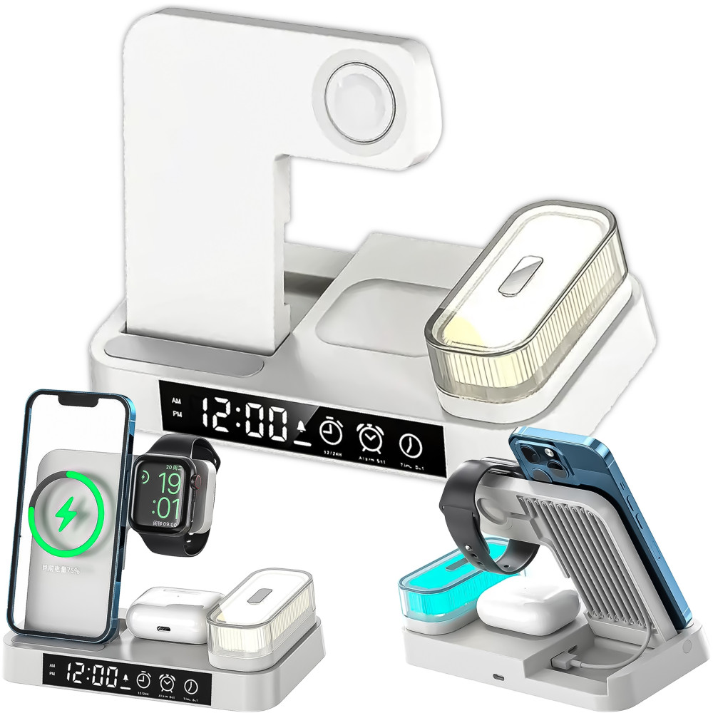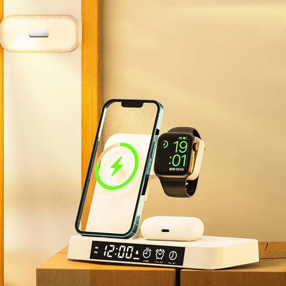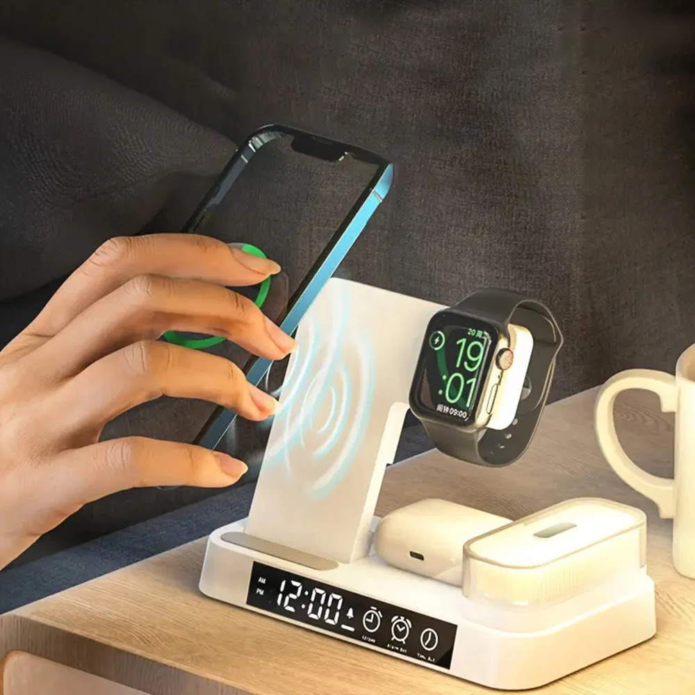 Töltsd vezeték nélkül a QI 15W szabványnak megfelelő eszközöket! TÖLTŐ TÖLTŐÁLLOMÁS 4IN1 ️GYORS TÖLTÉS ️TÖLTI TELEFONOT, ÓRÁT, FEJHALLGATÓT ️TÖLTŐ VÉBRESZTŐ LÁMPA