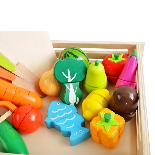 FA ZÖLDSÉGEK KIEGÉSZÍTŐKKEL DOBOZBAN 34 db. SZÍNES ZÖLDSÉGEK ÉS GYÜMÖLCSÖK GYŰJTEMÉNYE - egy dobozban precízen reprodukált zöldségek és gyümölcsök készlete érdekes szórakozást tesz lehetővé otthon, a boltban vagy a főzés során; Az élénk és lédús színek felkeltik a gyermek figyelmét, és játékra ösztönzik őket . VÁGHATÓ ÉS ÚJRA ÖSSZESZERELHETŐ - a mellékelt 2 késnek és egy táblának és a belső mágneseknek köszönhetően félbe, sőt néhány darabra vághatod a tárgyakat! Ezután csatlakoztassa őket újra, ami kétségtelenül változatosabbá teszi a szórakozást. A szett egy hámozó utánzatot is tartalmaz . BEFOLYÁSOLJA A GYERMEK FEJLŐDÉSÉT - a játék nemcsak érdekes és örömteli időtöltést tesz lehetővé , hanem befolyásolja a gyermek intellektuális fejlődését és motoros készségeinek (motoros készségek) növekedését is ; fejleszti a képzeletet és serkenti a kreativitást , valamint megtanítja a csoportos együttműködésre, fejleszti a szociális és beilleszkedési készségeket; Nemcsak a zöldségek nevének, formájának felismerésében hasznos, hanem a színek elsajátításában és a számolásban is. HORDOZHATÓ - a készlethez tartozik egy doboz, aminek köszönhetően a gyermek könnyen magával viheti az óvodába, baráthoz vagy a kertbe; Kis méretű és nem foglal sok helyet, így könnyen magunkkal vihetjük utazásra . Minden elem elfér a dobozban, így könnyebb a rendtartás. LEÍRÁS – életkor: 3+; elemek száma a készletben: 34; méretek (hossz/szélesség/magasság): 23,5/26/6cm; készlet súlya: 0,984 kg; súlya csomagolással: 1,119 kg. LEÍRÁS életkor: 3+ elemek száma a készletben: 34 méretek (hossz/szélesség/magasság): 23,5/26/6cm készlet súlya: 0,984 kg súlya csomagolással: 1,119 kg BELEÉRTVE doboz kés x2 hámozó (utánzat) vágódeszka paradicsom - 2 elem körte - 2 elem uborka - 2 elem citrom - 3 elem hal - 2 elem hagyma - 2 elem kivi - 2 elem sárgarépa - 2 elem sütőtök - 2 elem görögdinnye - 4 elem brokkoli - 2 elem padlizsán - 2 elem narancs - 2 elem A színes zöldségekből és gyümölcsökből álló készlet dobozban nagyszerű kiegészítője a szórakozásnak azoknak a kis szakácsoknak, akik szeretnek otthon játszani, vásárolni vagy főzni. A gyerekek szívesen nézik a felnőtteket, és a készlet ezt lehetővé teszi számukra. Lehetővé teszi, hogy kiskorától kezdve szerepet játsszon, és oktatási funkciót töltsön be. A rendkívül ízletes és színes zöldség-gyümölcs utánzatok kollekciója precízen készült, élénk és lédús színei hatnak az esztétikára, ezáltal felkeltik a gyermek figyelmét, játékra ösztönöznek.