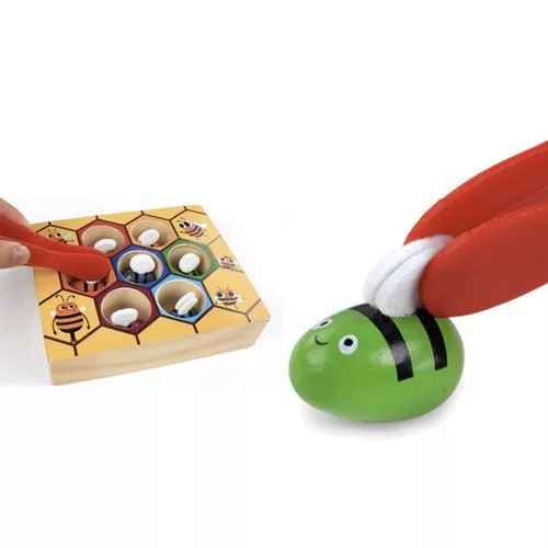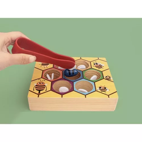 MÉZSEJT FA JÁTÉK KAPD EL A MÉHECSKÉT - ez az egyedülálló fából készült játék nagyszerű ötlet, hogy elfoglalja kisgyermekét. A móka az, hogy műanyag csipesszel megragadjuk a méhek szárnyait. A rovarok egy fa méhsejtben vannak elrejtve. Minden méh más színű, és a szárnyak filcből készültek. FÁBÓL KÉSZÜLT - a fajátékok időtlen ajánlat, amely minden kisgyermeknek örömet okoz. A fa klasszikus szépsége és tartóssága azt jelenti, hogy mindig is nagy elismerésnek örvendett. Ez az alapanyag natúr színben és festve is jól mutat. A játék minden gyermek számára biztonságos. A természetes alapanyag azt jelenti, hogy ha a gyerek a szájába veszi is a játékot, akkor sem érintkezik mesterséges anyagokkal. ÉLVEZI ÉS TANÍTJA - a játék serkenti a legkisebbeknél a kreativitást és a képzeletet, fejleszti a térérzéket, emellett edzi a kis kezeket és serkenti a tapintást. Ez egy nagyszerű módja a szem-kéz koordináció gyakorlásának, ami nagyon fontos a jövőben. ÉLŐ SZÍNEK - a játék élénk színekben van megtartva, aminek köszönhetően játékra ösztönzi a kisgyermeket, serkenti a legkisebbek fantáziáját és serkenti kreativitását. A játék a méhsejt tökéletes ábrázolása. MŰSZAKI ADATOK - szín: többszínű; anyaga: fa, műanyag, filc; lyukak és méhek száma: 7; lyuk átmérője: 3,5 cm; méh hossza: 2,8 cm; doboz méretei: 16,5 x 13,5 x 3,6 cm LEÍRÁS szín: többszínű anyaga: fa, műanyag, filc lyukak és méhek száma: 7 lyuk átmérője: 3,5 cm méh hossza: 2,8 cm doboz méretei: 16,5 x 13,5 x 3,6 cm BELEÉRTVE játszma, meccs csipesz 7x méhecske
