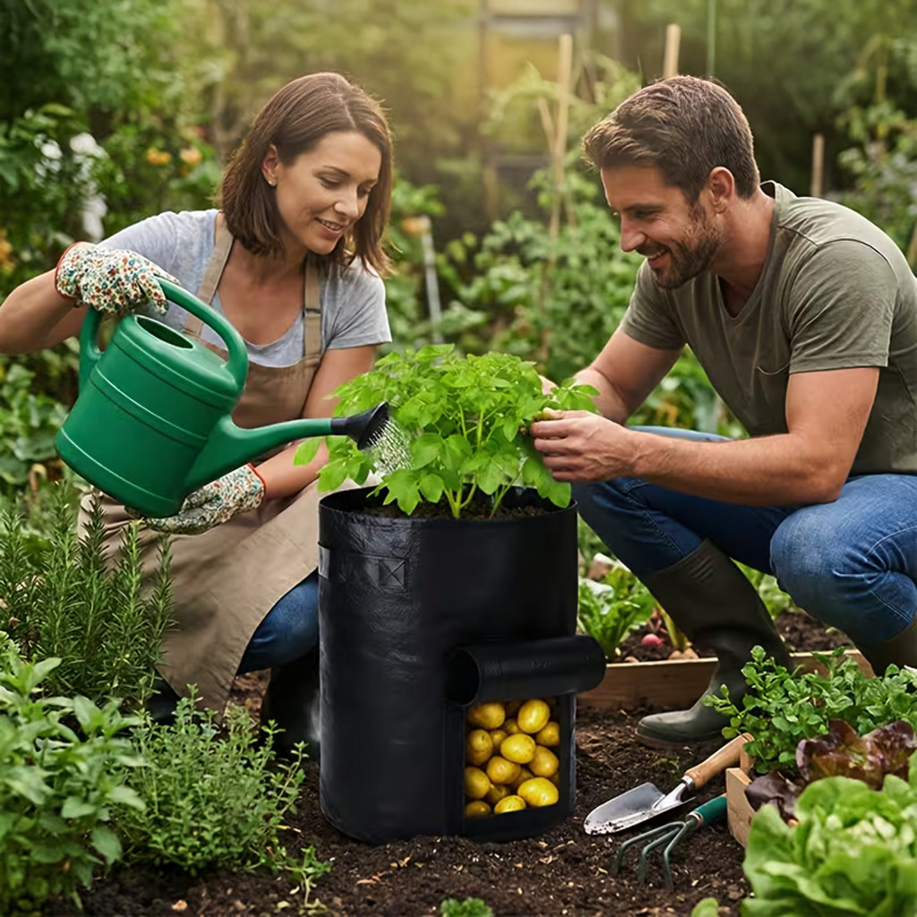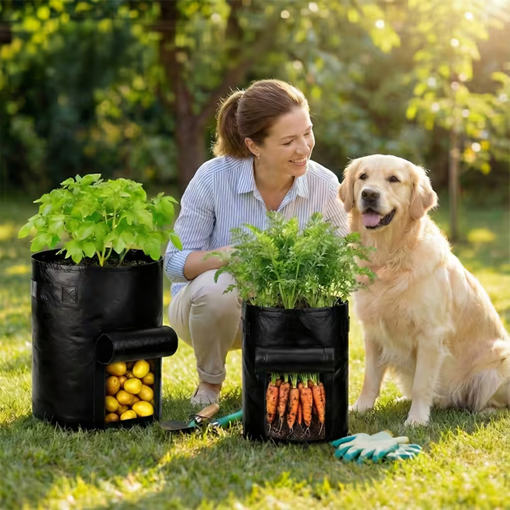 Kényelmes fogantyúk - megkönnyítik a táska hordozását még akkor is, ha tele van földdel és növényekkel.