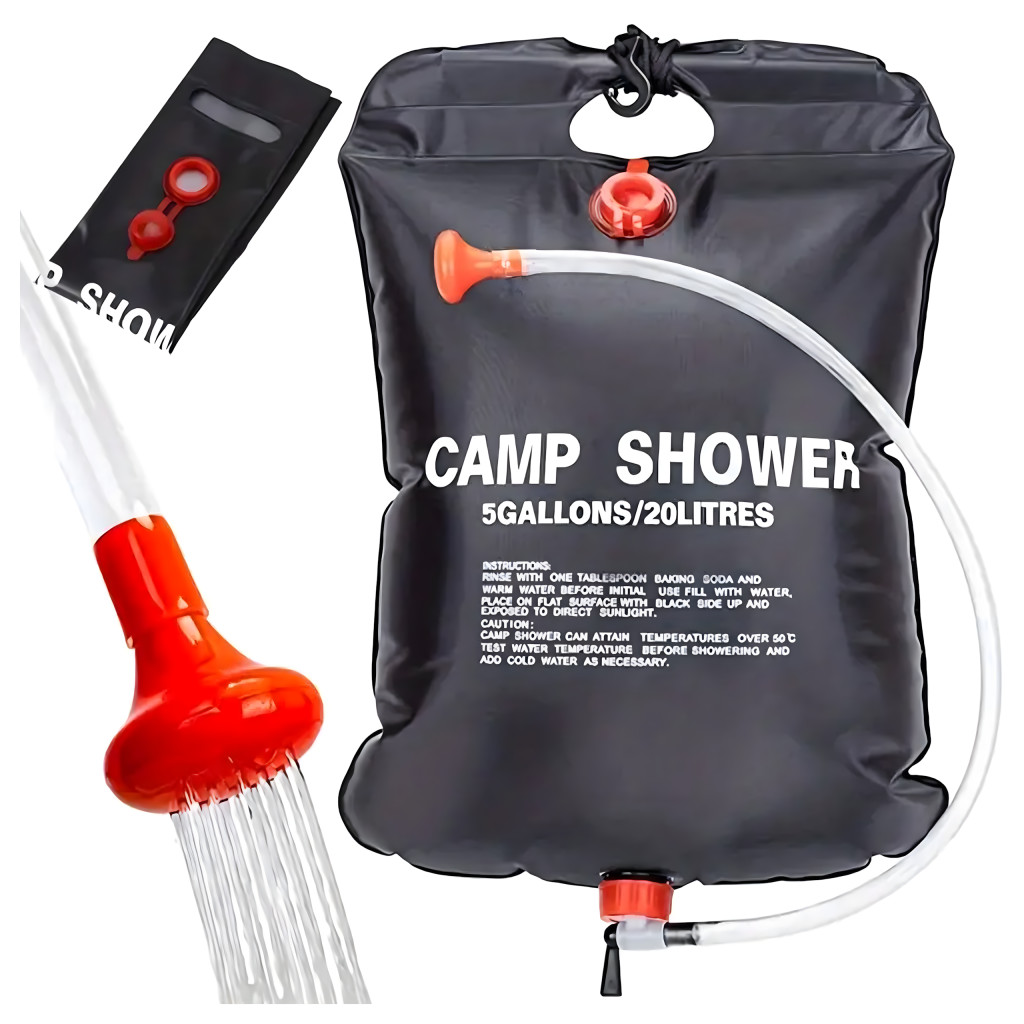 20 literes napelemes utazózuhany – tökéletes kempingezéshez, strandra vagy bármilyen szabadtéri kalandhoz! Napenergia segítségével 48°C-ra melegíti a vizet , így bárhol is van szükséged rá. Összecsukva kompakt, akasztófüllel és kézi zuhannyal – kényelmes és higiénikus útközben!