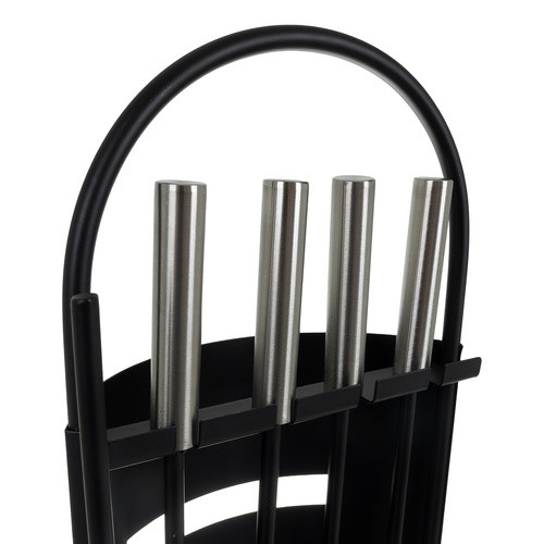 5 az 1-ben készlet – a készlet tartalmazza a kandallók és egyéb tüzek karbantartásához szükséges összes elemet: fogót, lapátot, seprűt és vasalót , így a készlet sokoldalú. Mindez elfér a mellékelt állványon .