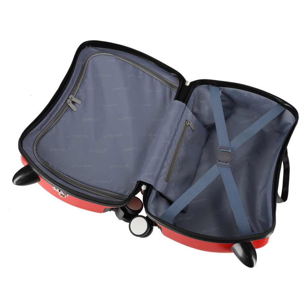 - Megfelelő gyermek bőrönd - könnyen hordozható kézipoggyászként, kényelmet biztosítva a gyermeknek és teljes irányítást a szülőknek