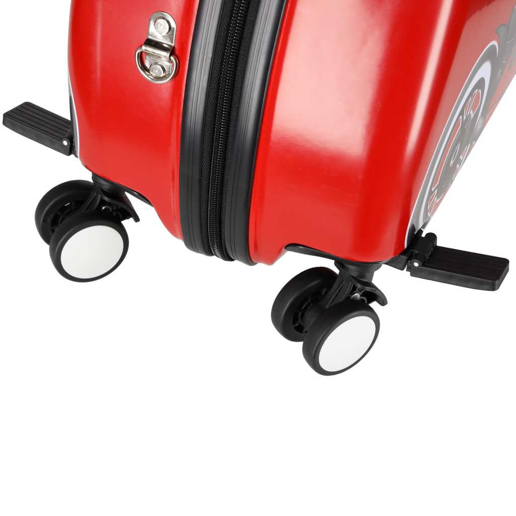 Amikor az unalom próbál úrrá lenni rajta, akkor jön a képbe - egy kis utazóbőrönd gurulós funkcióval . A szülő a hevederen vezeti , a kisgyerek pedig úgy ül benne, mint egy kis motoros . A masszív, kemény tok, a 360°-ban elforduló első kerekek és a könnyen vezethető kialakítás teszi ezt a tökéletes kézipoggyászt a fiatal utazók számára.