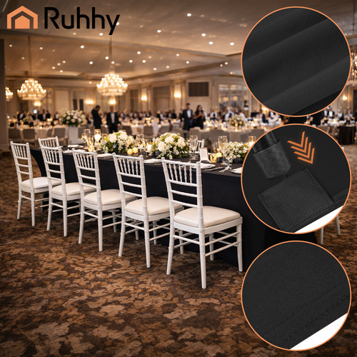 A Ruhhy asztalterítő praktikus és elegáns megoldás bármilyen ünnepségre, bankettre vagy céges rendezvényre . Ez a rugalmas fekete bankett terítő tökéletesen illeszkedik az asztalhoz, sima, esztétikus felületet hoz létre gyűrődések és gyűrődések nélkül . Megbízható választás vendéglátóknak, esküvőszervezőknek és mindenkinek, aki gyorsan szeretné átalakítani egy helyszín megjelenését.