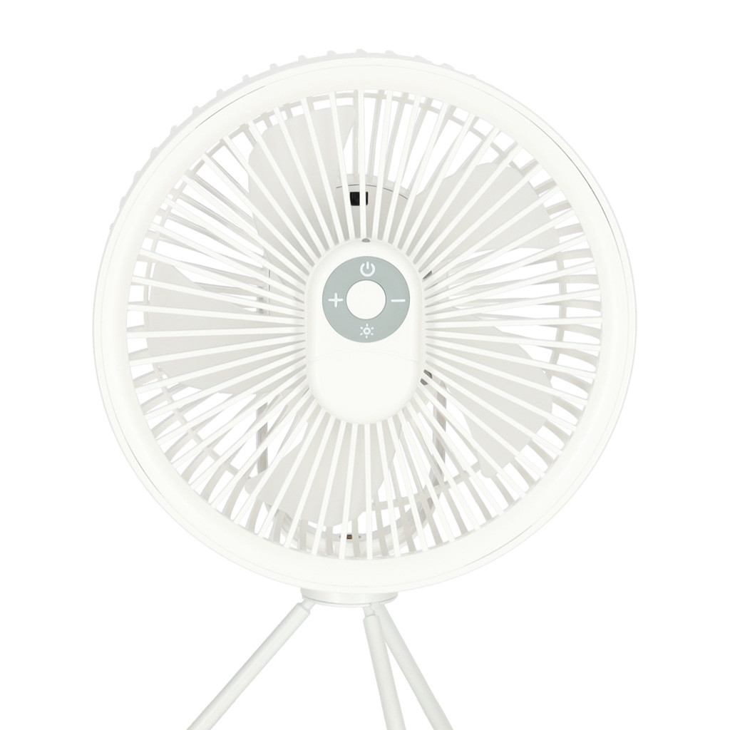 A kompakt és praktikus asztali ventilátor négy fújási móddal rendelkezik a tökéletes légáramlás szabályozása érdekében. Választhat a természetes mód, a gyenge/közepes/magas sebesség közül. A ventilátorba beépített LED-lámpák nemcsak könnyűvé teszik az éjszakai használatot, hanem otthonos hangulatot is teremtenek. Az univerzális kialakítás lehetővé teszi, hogy a ventilátort bárhová kényelmesen elhelyezze. A mellékelt állvány lehetővé teszi, hogy stabilan elhelyezze asztalon, éjjeliszekrényen vagy asztalon. Az állványt a fogantyú segítségével leveheti és fel is akaszthatja a ventilátort. A ventilátor minimalista kialakításának köszönhetően tökéletesen illeszkedik bármilyen belső térbe anélkül, hogy megzavarná annak elrendezését. A praktikus távirányító lehetővé teszi a készülék távoli vezérlését, így kényelmes használatot biztosít. A távirányító mágnessel rendelkezik, amelynek köszönhetően a ventilátorhoz rögzíthető, így nem vész el.