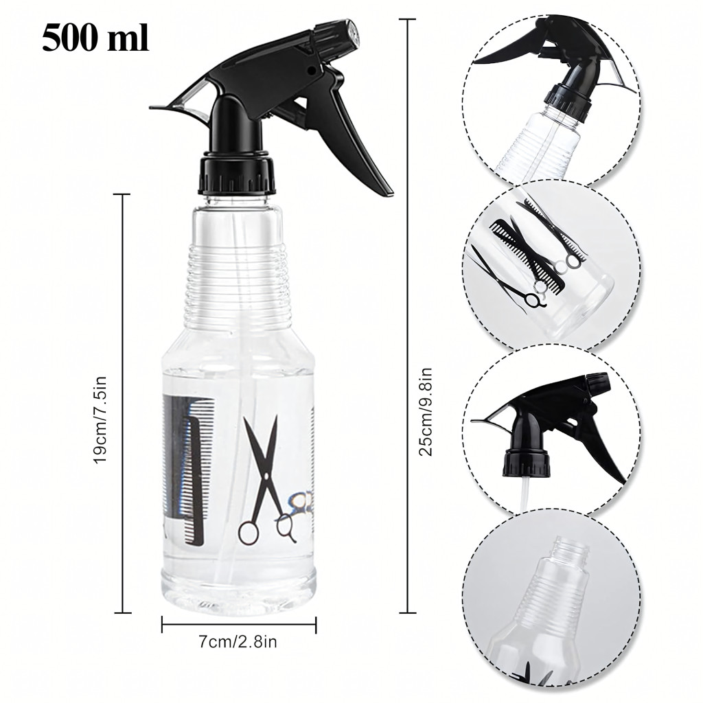 Ez a sokoldalú, 500 ml-es szórófejes permetezőgép praktikus eszköz fodrászszalonokba, kertekbe és otthonokba. Állítható permetezéssel (párásítás vagy erősebb sugár), átlátszó tartállyal a könnyű vízszint szabályozás érdekében, valamint kényelmes permetező mechanizmussal rendelkezik . Tökéletes haj, növények és szoba felfrissítésére.